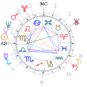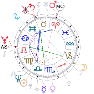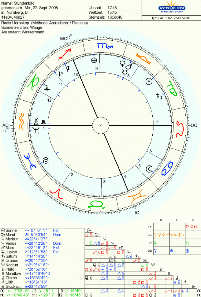 Schauen wir uns zunächst einmal das Horoskop für die Inbetriebnahme an. Wir finden Mars, Venus und Merkur direkt am AC. Merkur ist gerade an Mars vorbeigezogen, Venus wird ihn und Mars in Zukunft erreichen. Außerdem ist sie Herrscherin des Aszendenten, außerordentlich stark in der Waage und fällt doch, wenn auch ganz knapp, ins 12 Haus, in die Unbestimmtheit (Döbereiner) oder geistige Realität zurück! Sie haben richtig gehört: sie fällt zurück, denn in der Stundenastrologie, die im Prinzip funktioniert, wie die Ereignisastrologie, wird ein Planet nicht ins folgende Haus gezählt, wenn er an der Grenze steht, denn wenige Minuten später ist Venus schon ganz im Haus 12. Wir haben es mit der Luft-Venus zu tun, der Waage-Venus, die im Bereich der Kunst und der Logik zuhause ist, weniger im Bereich der materiellen Wirklichkeit. Waage zieht Widder an, das ist also der Störfall, der durch Mars Haus 7 beherrscht. In der materiellen und kalten Wirklichkeit steht jedoch der Steinbock-Mond, der, auch das bemerkenswert, ein gradgenaues Trigon zur Sonne in der Jungfrau bildet, die in Haus 11 sich vorgenommen hat, die Ordnung der Freiheit (Haus 11) auf eine analytische und materielle Basis zu stellen. Venus von Mars zu Merkur ist ausnahmsweise schneller als Merkur, und übernimmt dessen Botenfunktion. Merkur vertritt Haus 9 und 12, Venus den AC und Haus 8, Mars Haus 7 und 2.