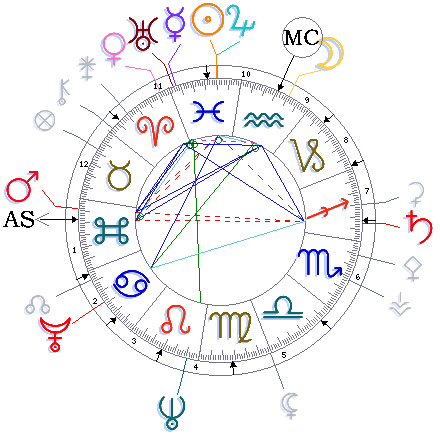 In der Flagge führt Kongo das Symbol der Venus. Passend zum AC-Stier, der Venus beherrscht ist. In dem riesigen Land, in dem alles über den Fluß läuft, der ebenso gewaltig wie gefährlich ist (Sandbänke, Stromschnellen, veränderter Lauf), werden schon lange brutale Schneisen in den Regenwald geschlagen. Neptun steht in einem Wasserzeichen in Haus 6 (Arbeit am Wasser), das dritte Haus der Bewegung beherbergt Merkur (Handel und Bewegung) und Haus 11 der Gemeinschaft ist das Fische-Haus. All dies passt zum mächtigen Strom, der Lebensader des Kongo. Heute steht Neptun auf genau 21:31º Wassermann, dem Mittagspunkt des Gründungshoroskops des Kongo! Daher wird die Herrschaft (Haus 10) klar in Frage gestellt, aufgelöst. Und vielleicht eine neue Vision geboren. (Seit dem 18. Sep. 2006 hat Kongo eine neue Verfassung).