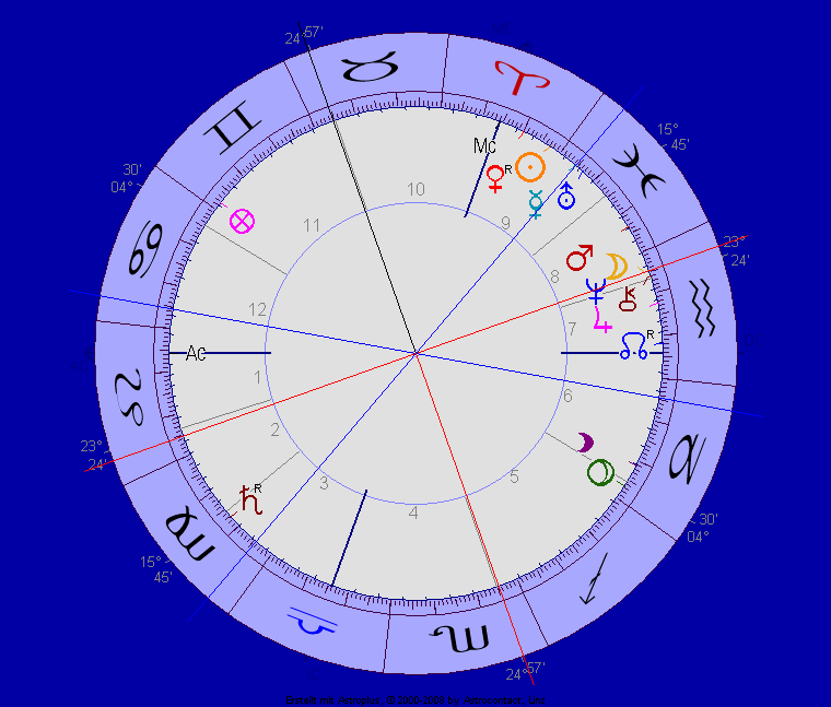 Erst mal sehen wir die Achse Haus 3/9 in die Finsternis integriert, und aufsteigen tut Waage, so daß die Venus maximal verstärkt wird durch Jupiter, der in seiner Erhöhung steht. Daraus läßt sich ersehen, wie groß die Bedeutung dieser Finsternis ist.