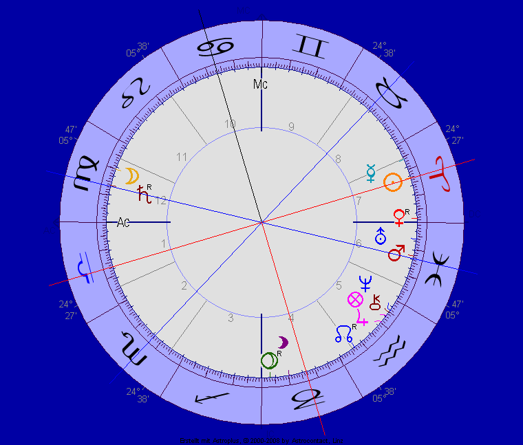 Die Ich – Du-Achse im Horoskop ist vergleichbar mit dem Anbranden des Wassers an die Küste. Wir können Fels, oder Wasser sein. Und das Wasser, das sind auch die anderen, die an uns heranbranden. In diesem Sinn sind wir gar keine Individuen, sondern haben Teil an einer Gemeinschaft von Menschen, die durch unser eigenes Wesen hindurch von außen auf uns wirken, während wir – Steinbock-AC tatsächlich – der Fels bleiben wollen, der sich nicht bewegt. In Bezug auf was? Hier in Bezug auf das Wasser, astrologisch Mond, Neptun und Mars-Pluto, aus dem Zusammenhang der Gewalten, die mit dem Wasser auch verbunden sind, dem Zeichen Skorpion entsprechend.