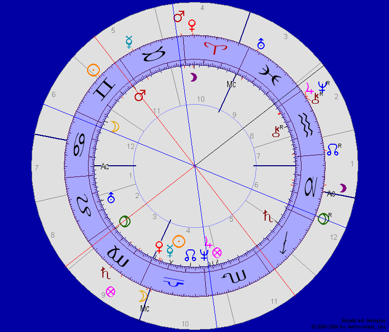 Dies ist kein Horoskop im Sinne von: „Hätte man es wissen können?“ Es geht um Beobachtung. Unten sehen Sie das Vergleichshoroskop von der „Fünften Republik“, der Staatsneugründung Frankreichs (06.10.1958 00:00 Paris) – und zwar im Innenkreis – außen den Abflugszeitpunkt der verunglückten Maschine der Air France.