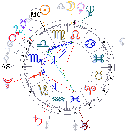 Für den er – Uranus in den Fischen – Revolutionär ist. Und wo? Im dritten Haus, dem Bereich der Bewegung und des Verkehrs. Geht es deutlicher? Und auch die Aspektbeziehungen passen.