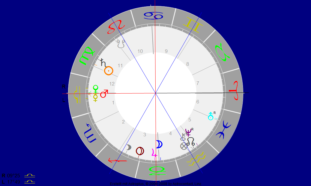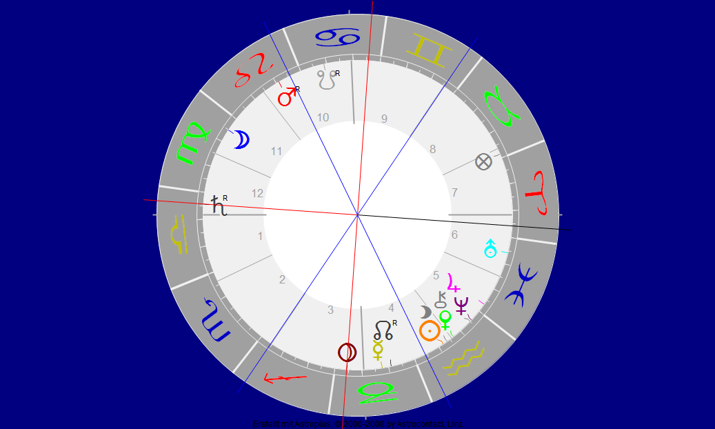 Übrigens: die Poesie des Erstversuchs mit Venus und Mars in Konjunktion, gesegnet von Merkur in der Waage, warum hat es nicht geklappt? Weil der Herr des Hauses 10 in vier ist, I suppose.