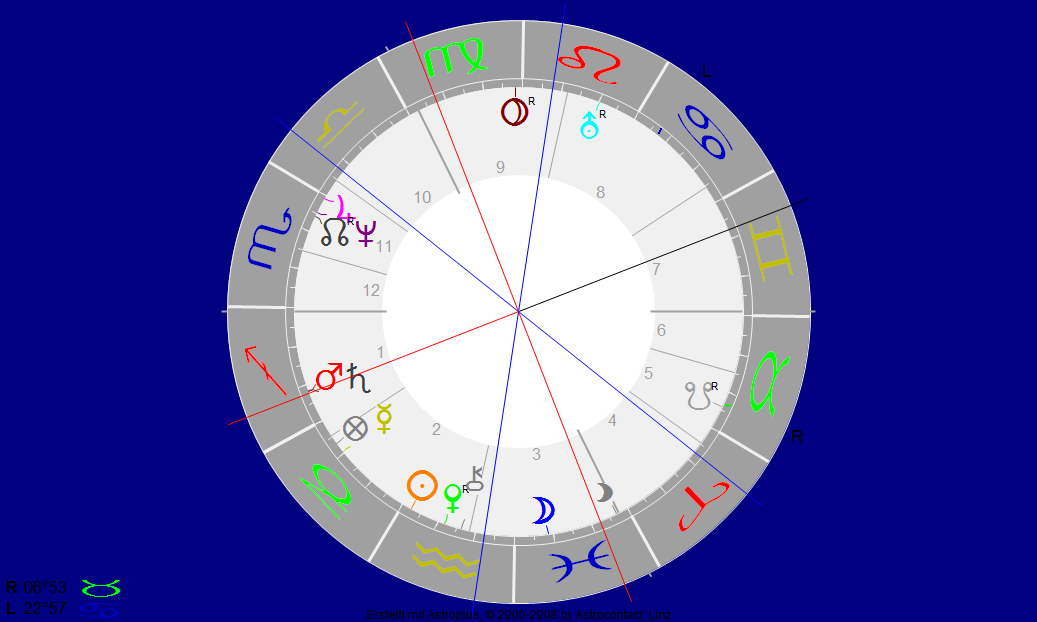 Mit dem notwendigen Machtwechsel im Iran rechne ich, wie früher erwähnt, später: wenn 2012 Uranus über den Widder-Mond Irans geht. Wenn jedoch der laufende Mars auf den Mars Israels um die 28º Löwe steht, also im Juni, fürchte ich einen Militärschlag Israels gegen Iran, dessen Mars im Gegenzeichen Wassermann sich durch weitere Provokationen berufen fühlen könnte, von inneren Schweinereien abzulenken, leider wie üblich.