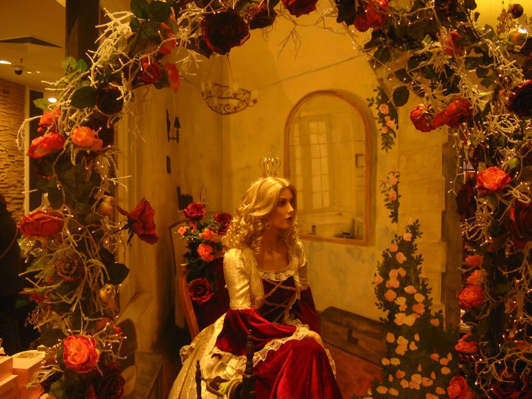 nun sitzt Sie hier, die Prinzessin (Dekoration des Buchhauses Campe) und wartet auf ihn …