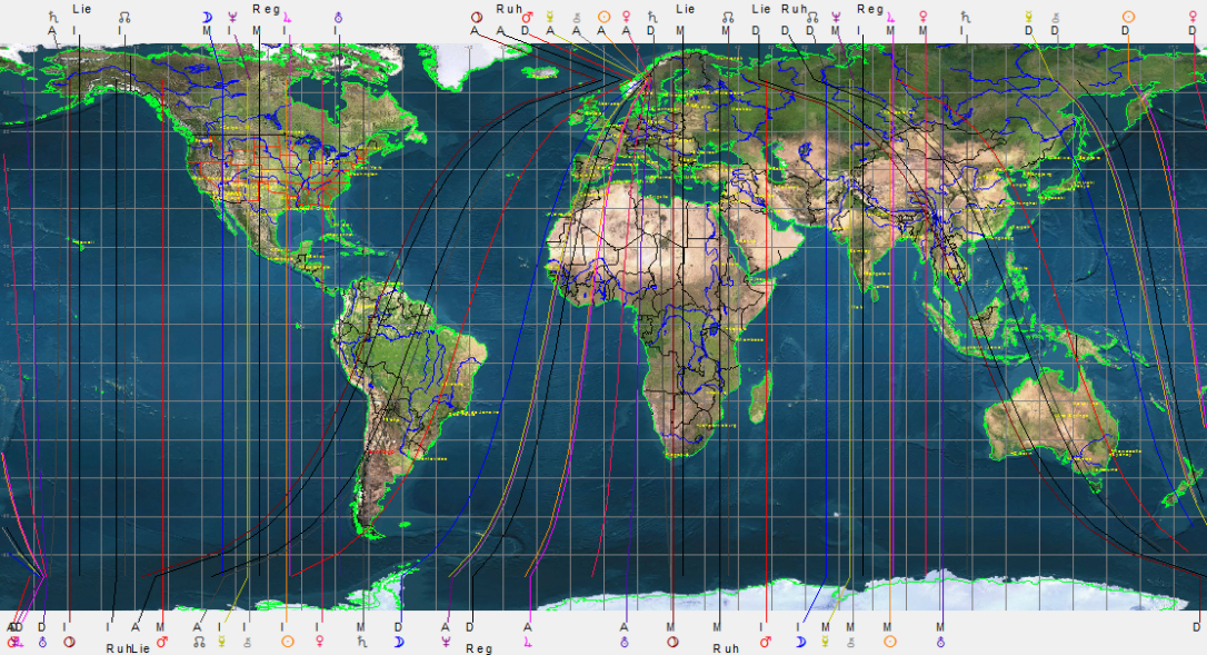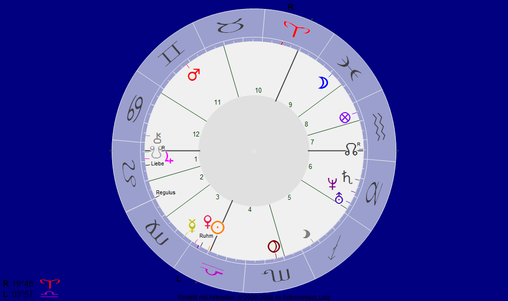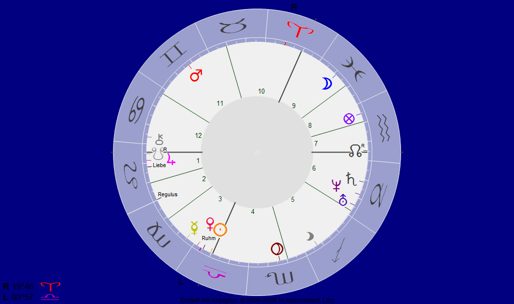 Dies ist das Horoskop für den Wiedervereinigungstag am 3. Oktober 1990. Der Fische-Mond ist das Volk im Zeichen des Glaubens, also Fische. Und nun ist bekannt, was zur Zeit alles durch die Fische geht … Venus, Jupiter, Uranus, Sonne … Wir sehen ja die aktuellen Planetenpositionen: