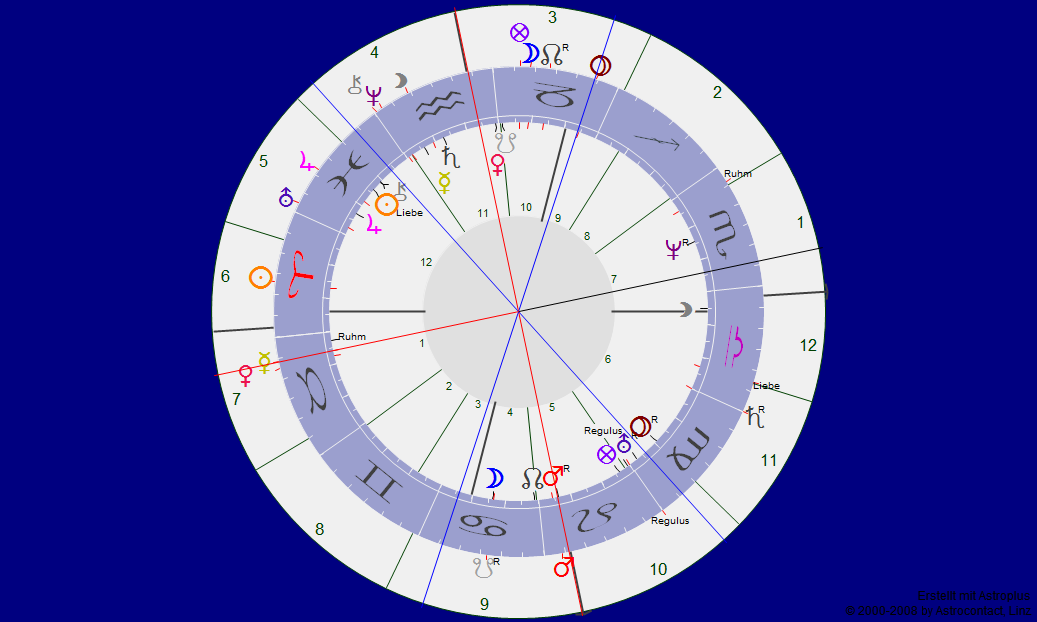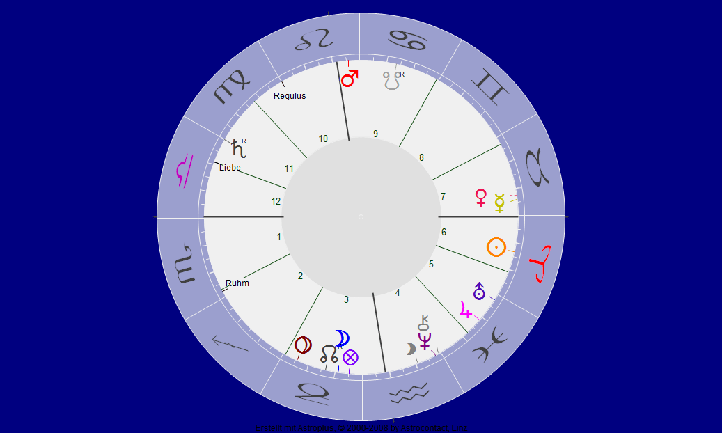 Und tatsächlich, da findet sich ein ganz genaues Quadrat zu meinem Radix-Mars. Das sogar noch genauer ist, wie das Quadrat, das Merkur zum laufenden Mars ohnehin hat. Und das Trigon zu Pluto seht ihr auch. O.k.: warum zeigt sich mir Merkur als Quadrat zu meinem Mars? Und während er allgemein untergeht, da steigt er doch glatt in meinem eigenen Radix auf! Most interesting! Und kann ich damit etwas verbinden? Nun schaue ich, was Mars bei mir macht. Er ist der Herr des Aszendeten: das bin ich also (fast) selbst.