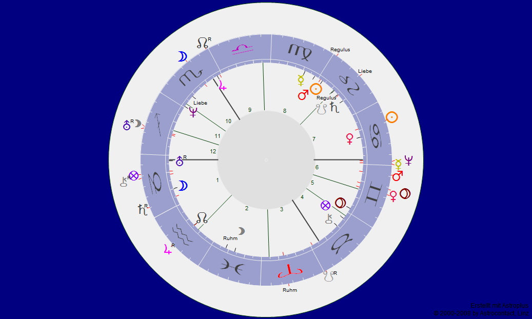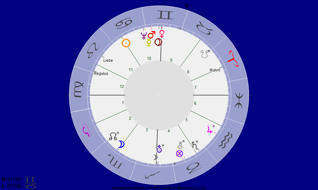 Sicher ist allein der Zusammenfall zu datieren, und der zeigt – hier nochmal ohne Vergleich – Jupiter rückläufig im Wassermann in Opposition – also zum Löwe-Zeichen, dem Markus zugeordnet ist – aber mit ausschließlich harmonischen Aspekten zu allem anderen: ideale Voraussetzungen für die Rekonstruktion.