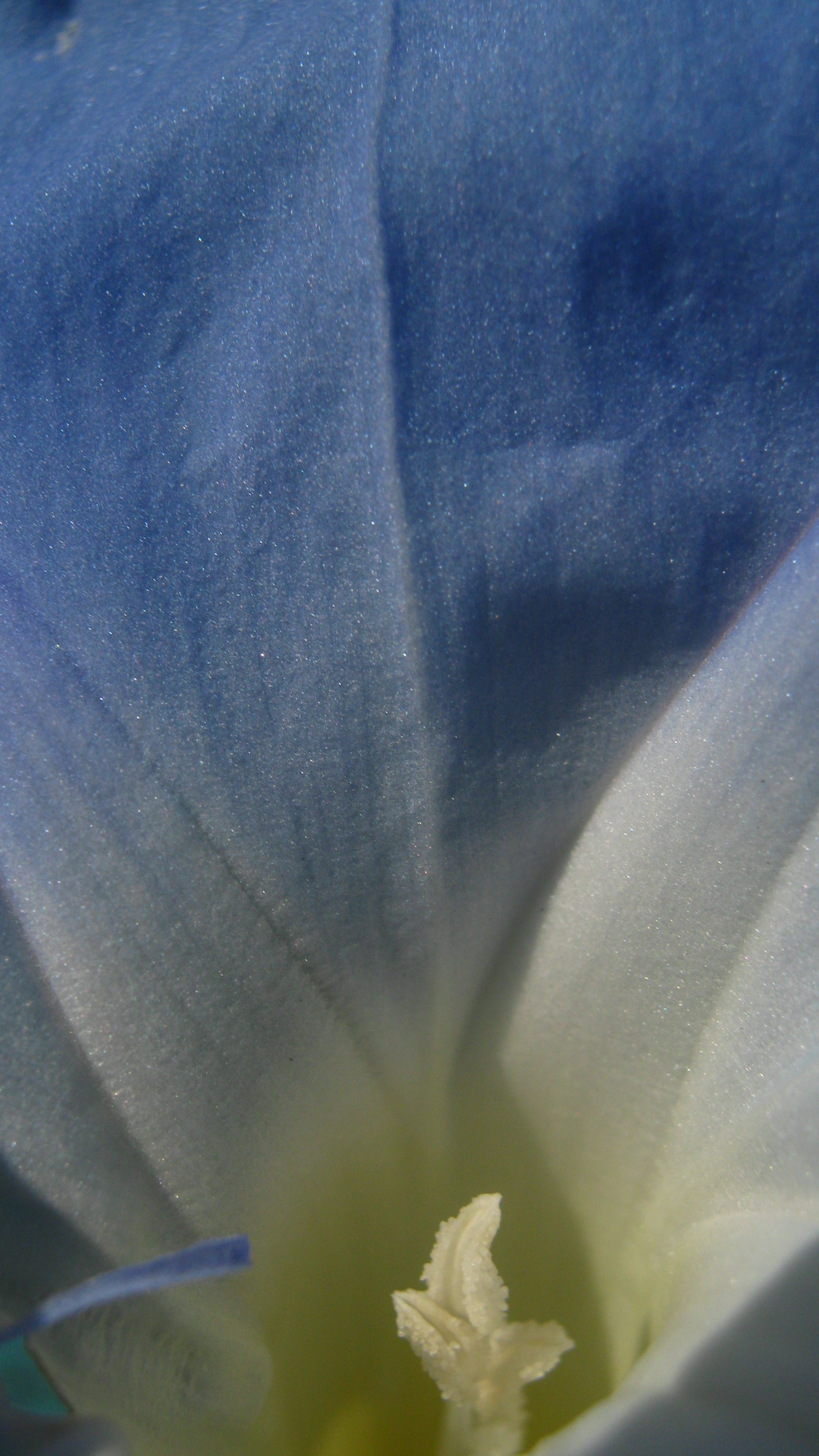 „Was ihn aber mit voller Macht anzog, war eine hohe lichtblaue Blume, die […] ihn mit ihren breiten, glänzenden Blättern berührte. Rund um sie her standen unzählige Blumen von allen Farben, und der köstliche Geruch erfüllte die Luft. Er sah nichts als die blaue Blume, und betrachtete sie lange mit unnennbarer Zärtlichkeit. Endlich wollte er sich ihr nähern, als sie auf einmal sich zu bewegen und zu verändern anfing; die Blätter wurden glänzender und schmiegten sich an den wachsenden Stengel, die Blume neigte sich nach ihm zu, und die Blütenblätter zeigten einen blauen ausgebreiteten Kragen, in welchem ein zartes Gesicht schwebte. Sein süßes Stauen wuchs mit der sonderbaren Verwandlung, als ihn plötzlich die Stimme seiner Mutter weckte […]“