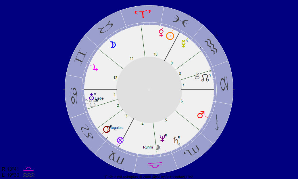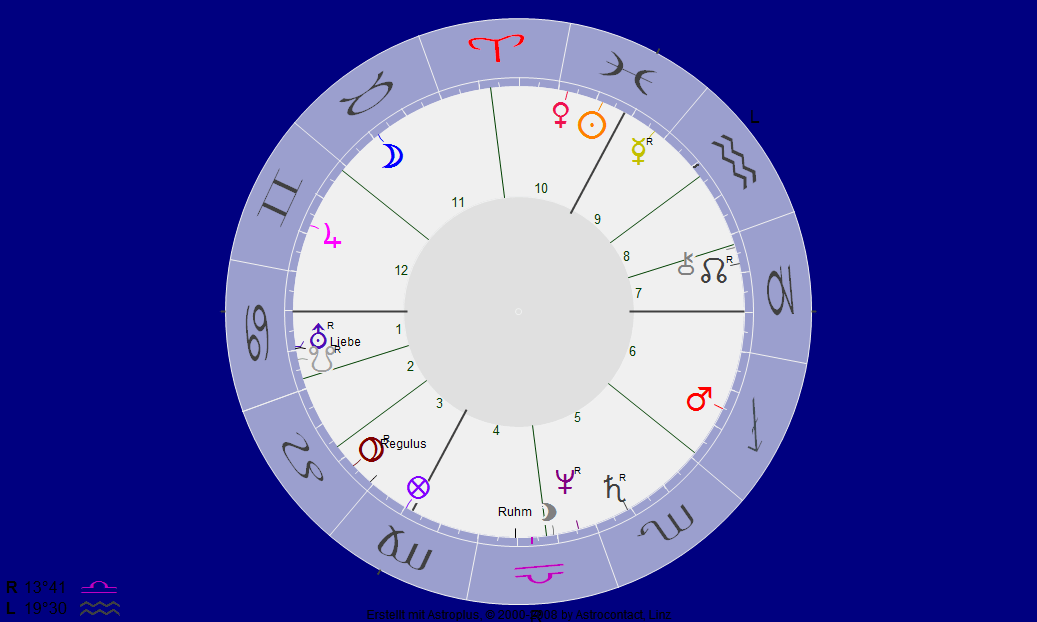 zwei Fische, beide Medienstars der gehobenen Presse, beide auf Video zu bewundern, und doch verschieden. Zum ersten: die optische Übereinstimmung ist klar. Zum zweiten: jenes etwas breitere bei Matussek, das ist der Stier-Mond. Und dann der Mars in Opposition! Schütze bei Matussek, Zwilling bei di Lorenzo! Und dann wieder die Venus-Differenz: Fische bei Matussek, Widder bei di Lorenzo. Pluss, daß Matussek den Pluto noch im Löwen hat und daher mit der Müdigkeit der Generation spielt, die vor Stolz kaum laufen kann.