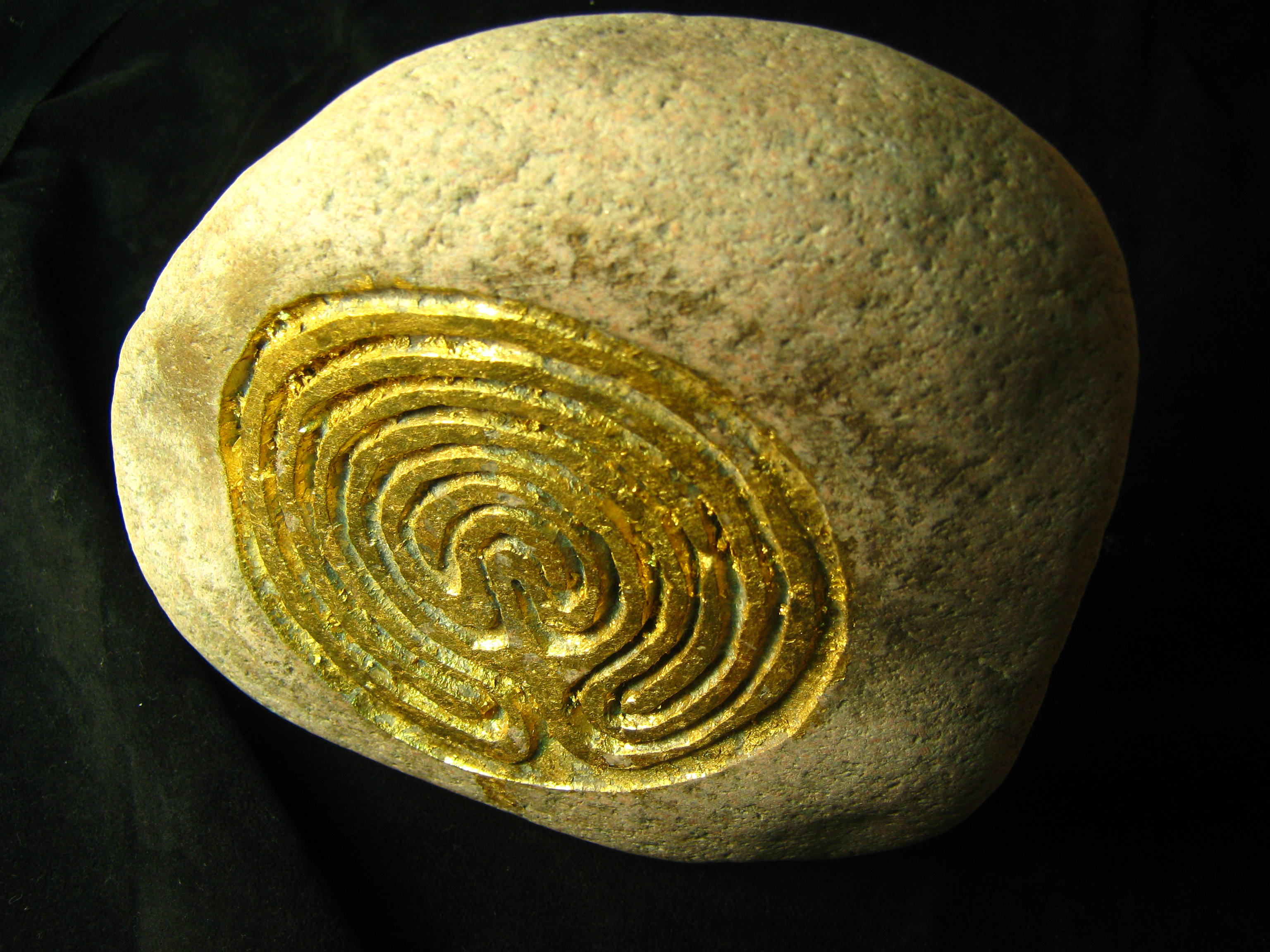 Foto Termin ©, Kretisches Labyrinth von Fernando Maha © – (2010, Flusskiesel und Blattgold, ca. 2,5 kg)