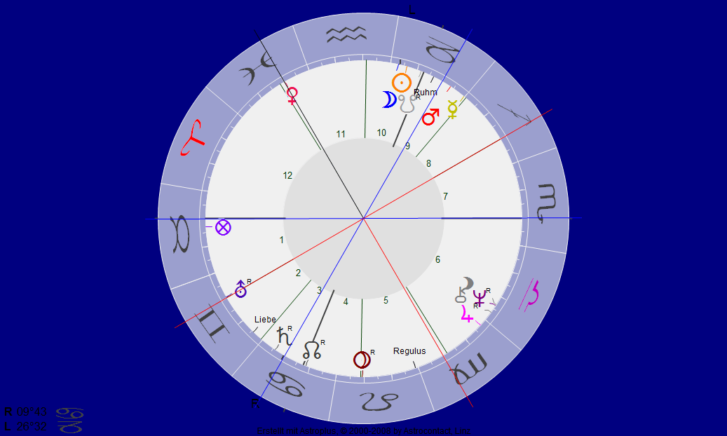 Ob das gut, oder schlecht ist? Auch die Astrologie hat den Blick in die Fixsternspäre einer viel genaueren Psychologie des sonnenbezogenen Rhythmus geopfert – sicher kann es interessant sein, diesen neu zu erobern – aber erst, wenn Astrologie und Astronomie wieder zueinander finden, also übermorgen … oder? All diese Gedanken gehören in die aktuelle 100%tige Opposition Löwe-Mond zu noch Wassermann-Neptun, Neptun bekanntlich Fotografie, als eines Scheines, einer verborgenen Sache, der wahren und gleichzeitig offenbaren und sich durch totale Offenbarung verbergenden Fotografie: denn noch lange wissen wir nicht, was Fotografie eigentlich ist, wie sie eingreift in das Gefüge der natürlichen Spiegelungen der Wirklichkeit. Wer weiß, vielleicht verzichten wir eines Tages darauf, weil wir herausfinden, daß Fotografie die Umgebung zu sehr fixiert – ihr saturnischer Anteil … ?!