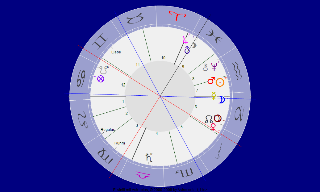 Und der andere? Ist in diesem Fall der Herr des gegenüberliegenden Zeichens: Saturn. Ich kenne ihn nicht persönlich, aber ich weiß, daß er im Zeichen Waage geboren ist. So steht er als Saturn in Haus 4 in der Waage auf meinem Deutungsweg richtig.