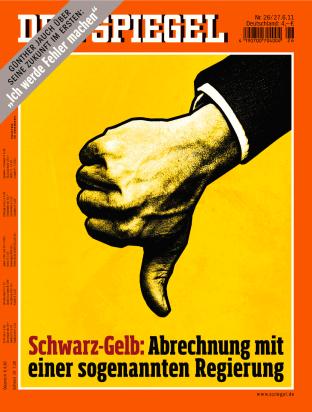 Oben: Titelbild des „Spiegel“-Magazins diesen Montag, 27.06.2011, unten: Deutschland-Horoskop mit Transiten