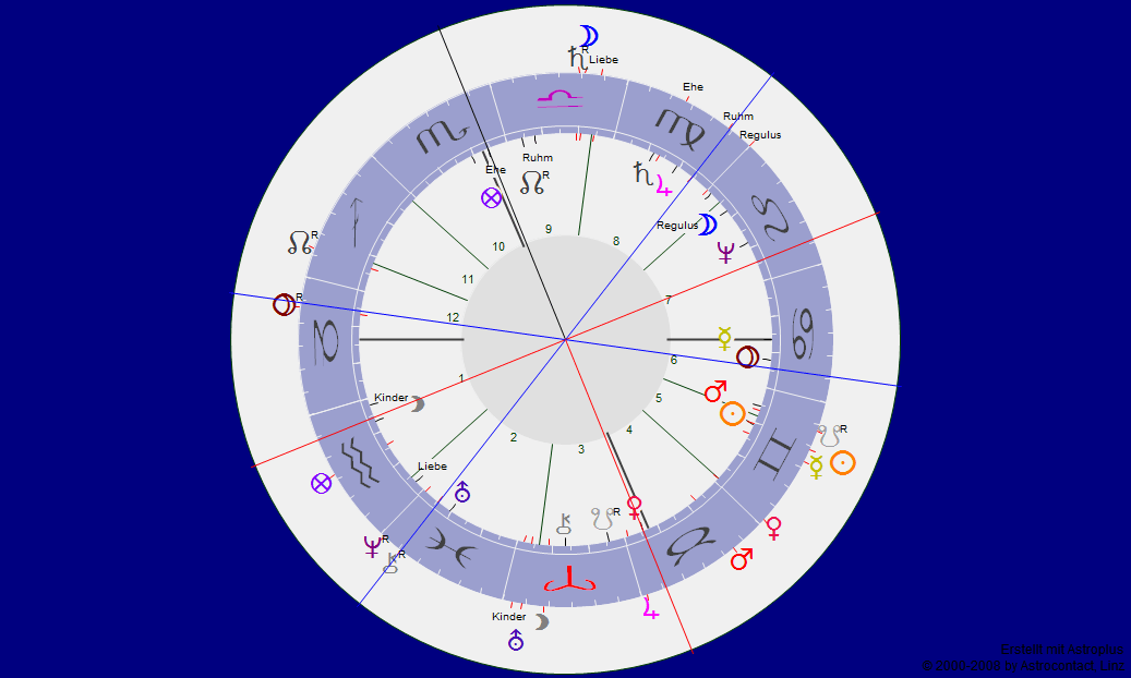 Ist übrigens bemerkenswert, Frau von Schierstedts Venus/Jupiter Konjunktion im Haus 7 und der Sonne in 8 incl. Pluto, und dann schreibt sie auch ein Buch „Reich werden mit den Sternen“ …