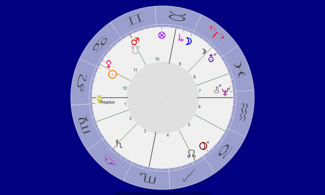 und so sieht die Baustelle aus, man scheint ganz schön Tempo zu machen. Dabei wäre es besser, sie würden sich ein wenig Zeit nehmen. Und nun schaut euch einmal dieses Prachtexemplar eines Horoskops an! Ich sage nur: Merkur im Löwen exakt am AC = Merkur sind Kinder im Löwen = Sonnenkinder. Da die am AC stehen, sind sie die Hauptsache.