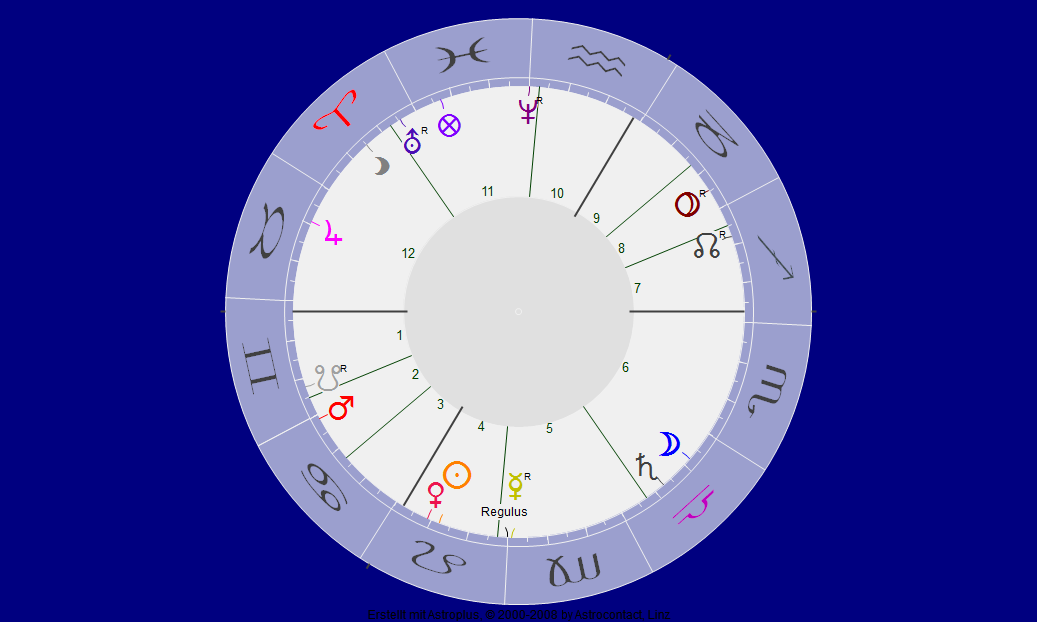 Jetzt ist der Mond „void of course‘ bildet also bis auf ein Trigon/Sextil zur Mondknotenachse, welches eben exakt ist, keine Aspekte mehr, bis er ins Trigon zu Mars geht, wenn der Mond morgen, bzw. schon heute kurz vor zwei Uhr Mittags ins Wasser-Trigon zu Mars im Krebs geht. Das bedeutet nach alter Lehre: Leerlauf bis morgen Mittag, dann aber gute Möglichkeit Dinge durchzusetzen, die wirkliche Herzensangelegenheiten sind.