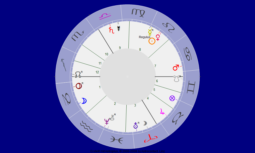 Wir sehen Saturn in der Waage in Haus 9. Unteres Bild muß man – glaube ich – anklicken, dann wird es größer und wir sehen drei rote Linien – ich habe Saturn vorübergehend rot gemacht …