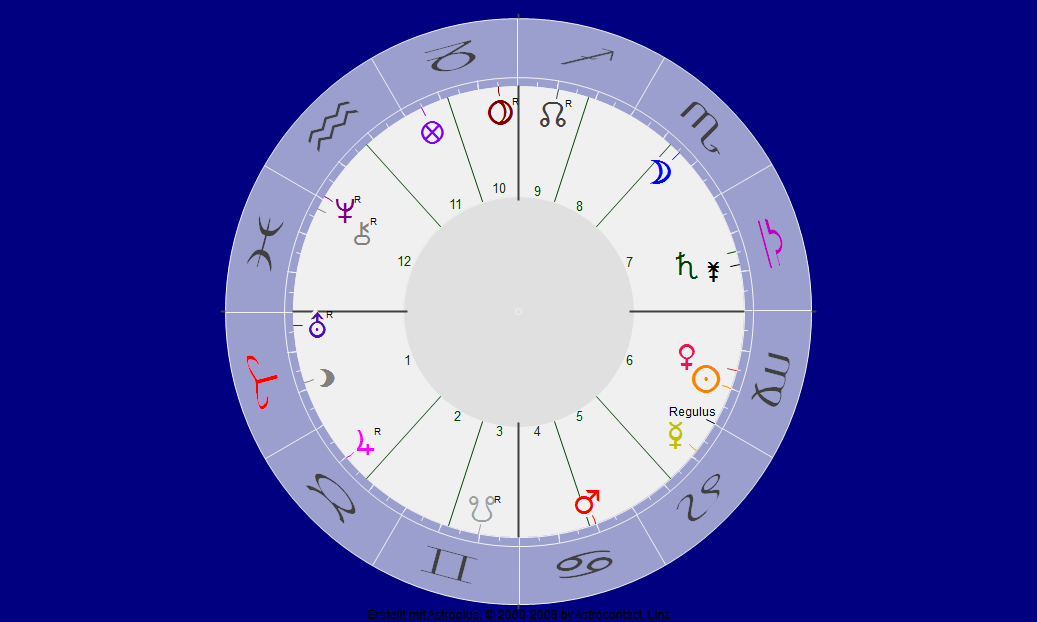 Nicht, daß jemand meint, ich wollte mich drücken, aber das ist nun sehr schwer zu lesen! Weil eben in der Minute der Aszendent wechselt. Und damit bekanntlich das, was wir in der klassischen Astrologie „Signifikator“ nennen, der Planet oder sogar die Stellung, die den Parteien entspricht – eine Minute später Anpfiff verändert das ganze Bild.