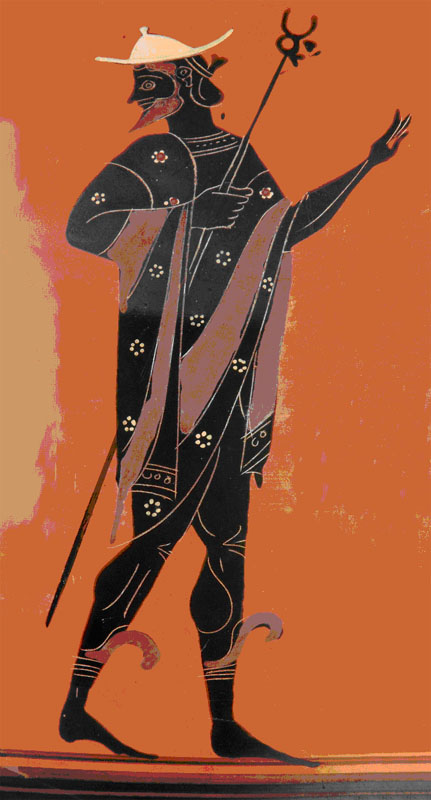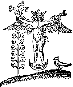 Obere Abbildung zeigt übrigens, daß es der Mond ist, der über das Geschlecht entscheidet, wenn die Seelen auf ihrer Rückreise hier ankommen (wie ja auch Steiner berichtet, und die sogenannte „Hermeswaage“ astrologisch bestätigt) – denn auf ihm steht das doppelgesichtige Hermes-Wesen. Der Vogel bringt es als Geist zur Erde, eine aus 13 (!) Blumengesichtern gebildete Pflanze hält den Kelch mit drei Schlangen (drei Geschlechtern) und eine vierte (äskulap-mäßige, heilsame) ringelt sich um die Hand – 13 die Zahl der Venus mit ihrem 13/8 Rhythmus, 4 die Zahl des Merkur …