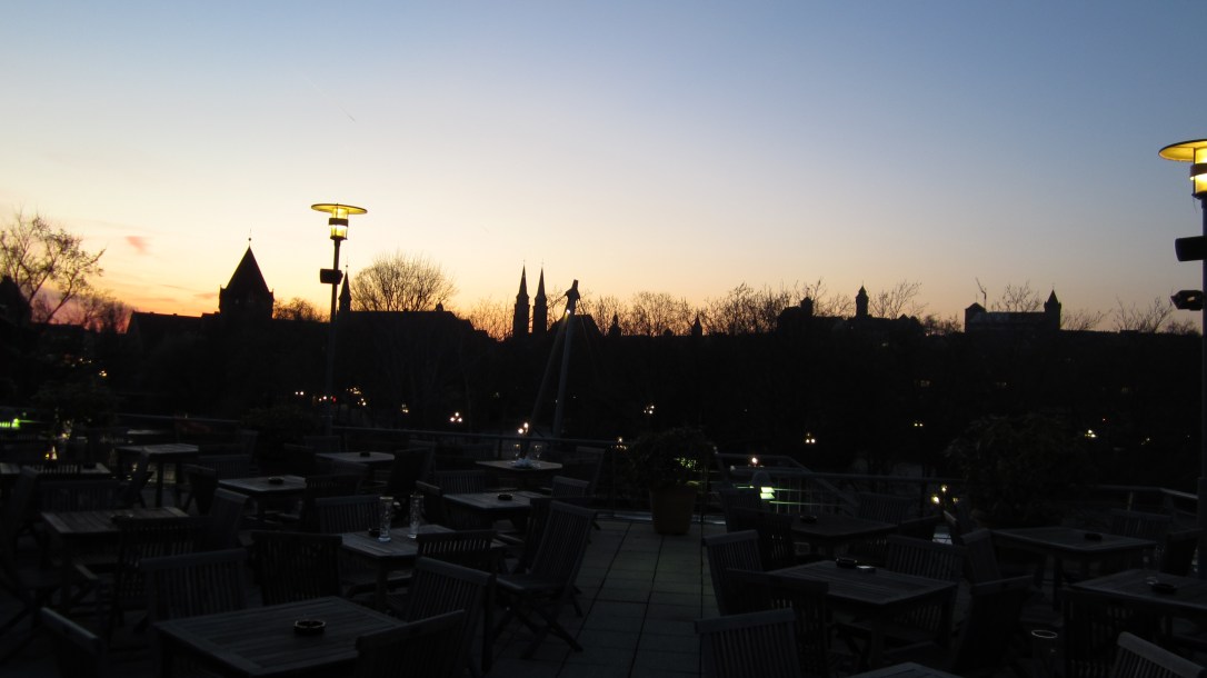 wer jetzt am Abend noch draußen sein kann, oder zumindest ein Fenster hat, das zum Sonnenuntergang zeigt, konnte heute einen nahezu verklärenden Blick auf die wie an einer Perlenkette aufgereihter Lichter im harmonischen Band – Jupiter unten und nur noch schwach leuchtend, Venus in der Mitte und glühend, dann die wachsende Mondsichel, schon in den Zwillingen – beobachten, und wer ein wenig nach hinten schaut, findet gleich auch den orange leuchtenden Mars.