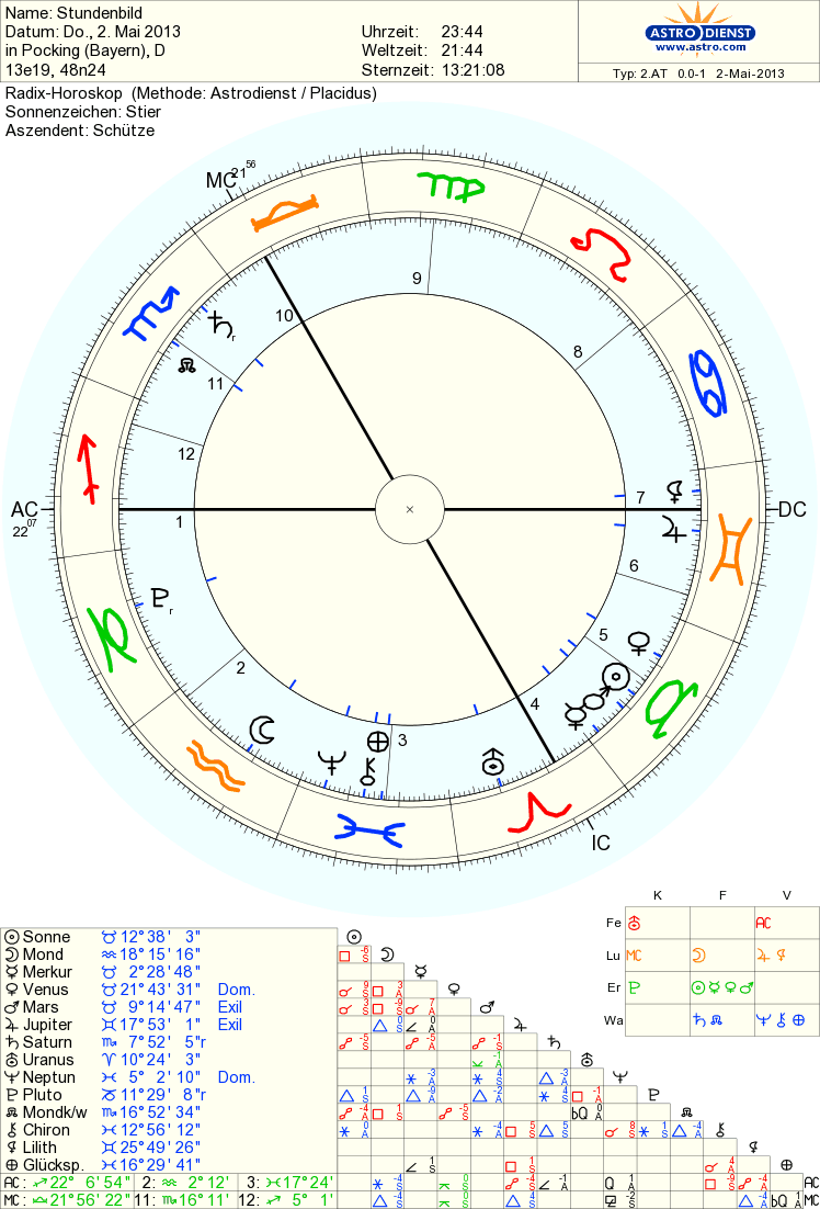 ja, dieser Wassermann-Mond macht einen immer ganz kirre. Weiß ich mal nicht genau, wo der Mond steht, steht er meist Wassermann. Dann wird mir klar – Wassermann-Mond natürlich. Weil man um diese Zeit emotional dünkelhafter – meine Emotionen, etc. – ist. Dazu kommt, daß Sonne in Stier und Staturn in Skorpion eine Opposition bilden – hier wird eine starke – fast schon Zeitschrumpfung (wenn es so etwas gäbe) und/oder Inanspruchnahme – bemerkenswerterweise eventuell durch Stiere oder Skorpione auf jeweils ihre Art – nur nicht die Nerven verlieren – sage ich zu mir selbst!
