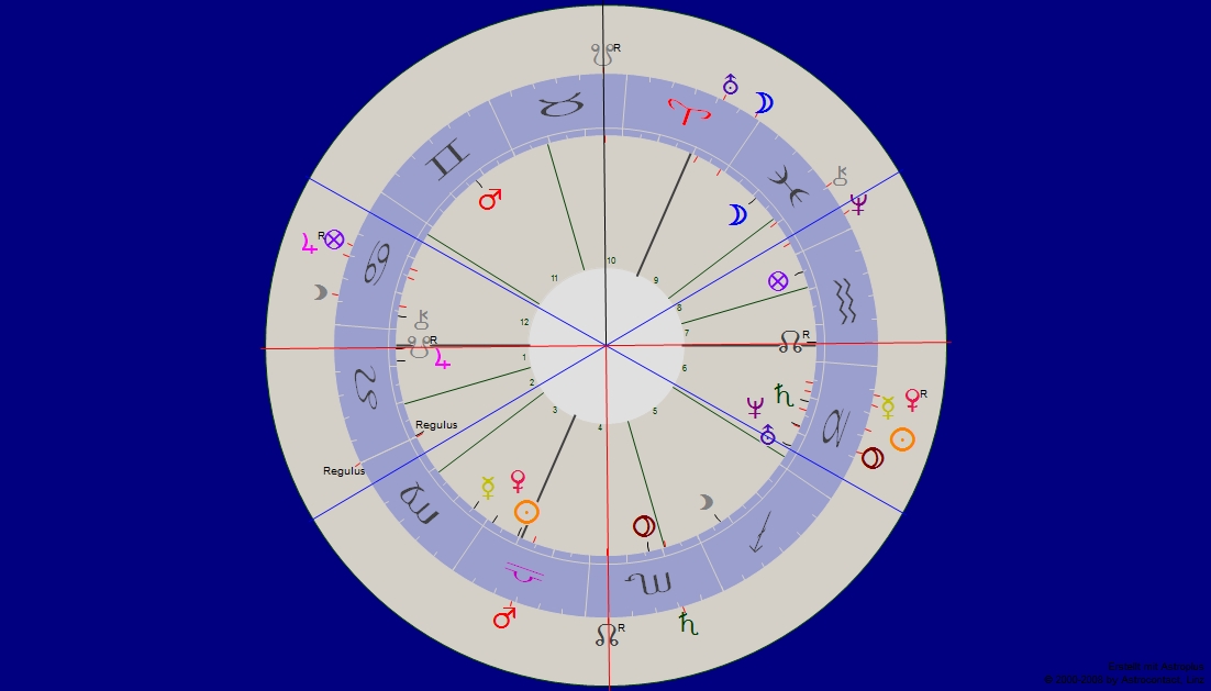 ihr wißt wahrscheinlich, daß ich mich nicht enthalten kann, auch Stundenhoroskope zu erstellen – : und das ist ja eigentlich nicht „politisch korrekt“. Denn man kann wohl wissen: „humanistische“ oder „klassische“ Astrologie  gibt Auskunft über Charakter, Persönlichkeit – sogar über das Karma, das man/frau mitgebracht hat – aber aus der Eingebung des Augenblicks einfach so die Planeten (und vielleicht sogar Fixsterne) zu befragen?! Nach Regeln aus dem Mittelalter? Ohne Geburtszeit und Ort?