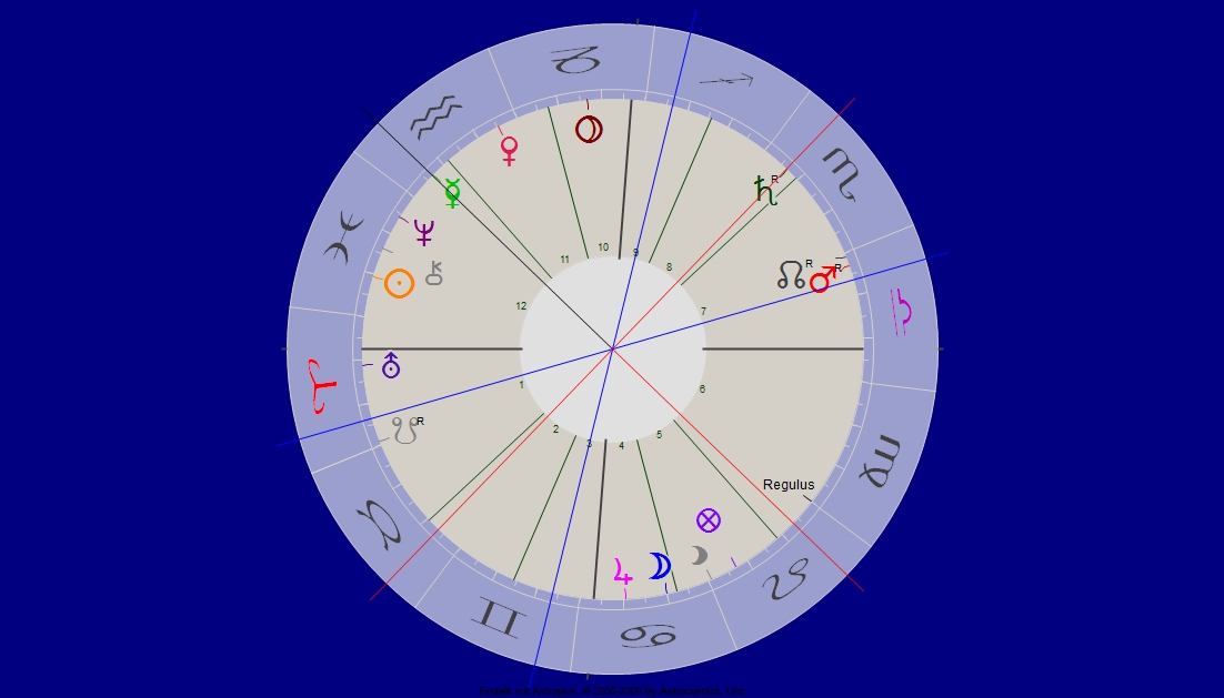 „Was tun?“ – angesichts einer bestimmten Problematik – fragt dieses Stundenbild mit Löwe-Aszendent: dem Thema der Selbstbehauptung – „Wie kann ich mich behaupten?“, lautet die Frage also richtiger, und der Klient gewinnt schon einen Horizont mehr! Tatsächlich drängt in seinen Zusammenhängen die Frage der Selbst-Behauptung auf sehr subtile Weise, ständig in diesem Konfliktfeld zwischen Vertrauen und Stabilität einerseits, Mißbrauch und Gebundenheit andererseits.
