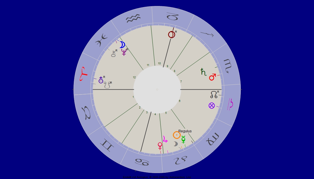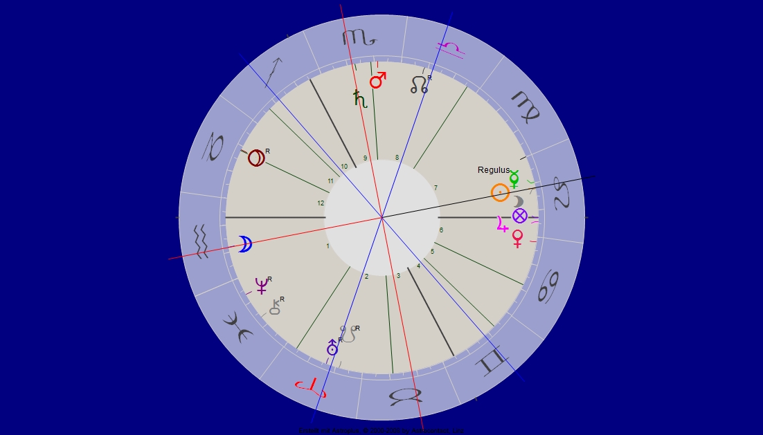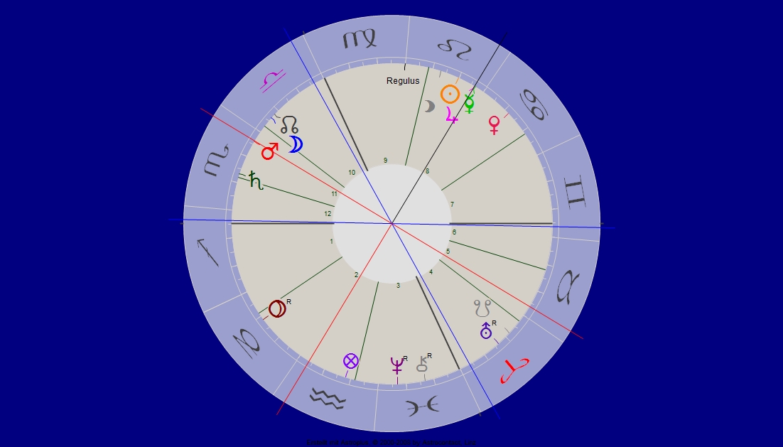 * letztes Spiegel-Interview nennt Dr. Christian Rätsch sie „überaus freundliche Wesenheit … „. Dies wäre in unsr`em Horoskop die ganze Löwen-Wärme Haus 5! Mit natürlich Lilith dabei …