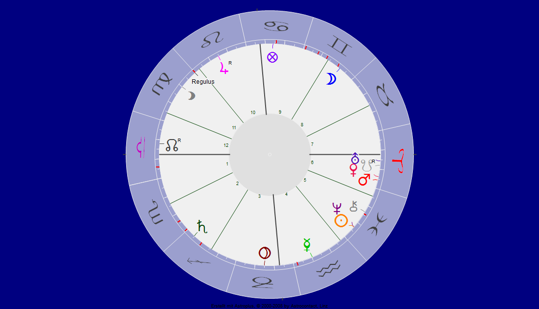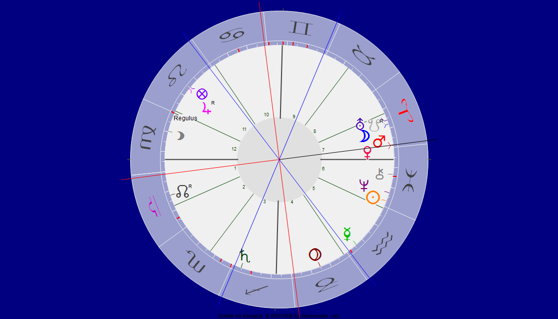 Der magische Eingang, der interessanterweise gewählt wird, ist die Astrologie. Einmal natürlich im Namen des Films. Jupiter aufsteigend … Jupiter Jones stellt sich – ein russophobes Intro über die Ermordung ihres planetengucksüchtigen britischen Vaters in St. Petersburg geht voran – als geboren im „Sternzeichen“ Löwe* mit Jupiter am Aszendenten auf 27 Grad vor – aber /Schnitt/ und dann Gesicht der freundlichen Frau Jupiter: das Problem mit der Astrologie sei, „daß sie totaler Schwachsinn ist.“