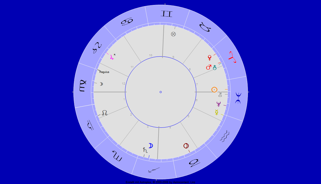 die Lesbarkeit der Bilder: Foto & Horoskop sind 1 Augenblick. Ganz unrelativistisch. Aber eben mit Fische aus Haus 7 nicht die Sonne, sondern die Reflexion der Sonne: Sehnsucht, frohe Erwartung – Frühling im Abendland. Der Direkte Blick geht auch im Foto zum wahrhaft prächtigen Jupiter – als goldglänzender – denn in diesem Winkel liegt ja tatsächlich die Burg im Horoskop gleichen Zeitpunkts …