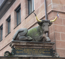 Dann noch zur Kenntnis nehmen: just gegenüber von diesem Abbild hat man einen Herrenmodeladen an der Fleischbrücke ausgeräumt, mitten in der Stadt: Merkur im Stier ist eben auch der Dieb:
