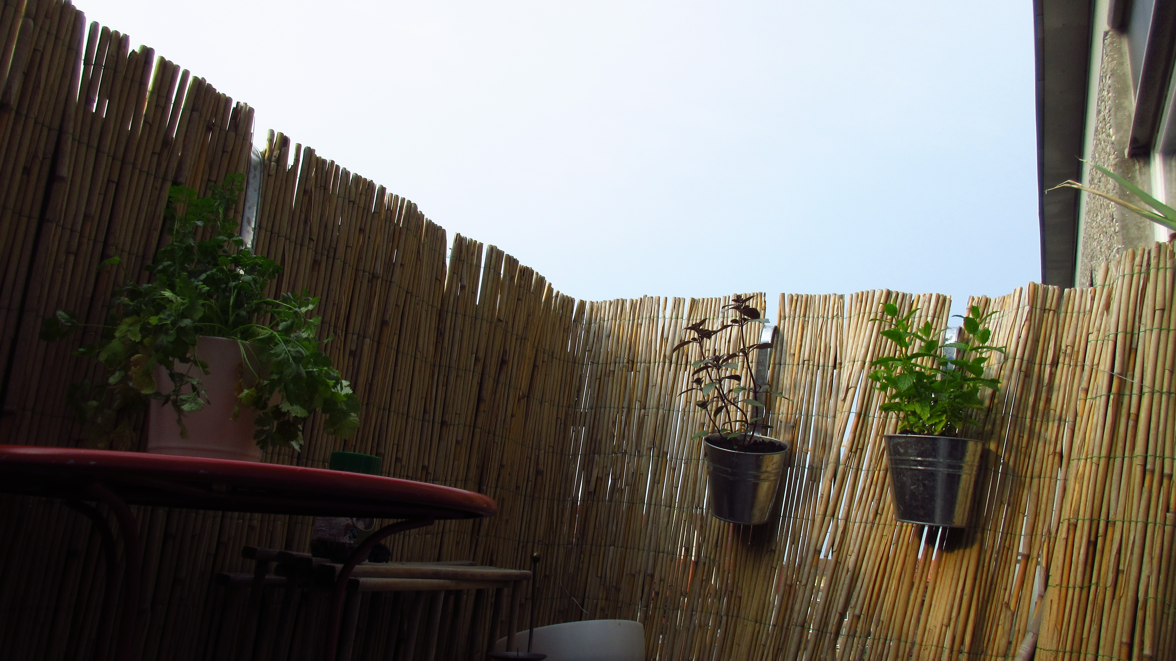 die Idylle trügt. Schau Dir das Bild oben genauer an, man kann es extrem vergrößern, und dann siehst Du: ein Taubenpärchen drüben auf dem anderen Balkon. Tauben sind ja bekanntlich Venus-Tiere, aber Venus beansprucht dann in diesem Sinn meinen Balkon. Und zwar nicht einfach nur so. Schon im März/April hat das Pärchen jeden Tag versucht, aus harten Birkenreisern ein Nest auf dem Betonboden zu bauen – jeden Tag hab ich das Nest abgebaut, manchmal zwei mal am Tag – und den Tauben freundlich erklärt, daß dies mein 12. Haus sei! Doch weil sie mich beständig ignorierten, nahm ich den alten, hölzernen Wäscheständer, und versperrte admit* den Zugang zu ihrer bevorzugten Brutstätte – worauf sie dazu übergingen, den morschen Kitt aus den noch morscheren Fensterrahmen zu picken – und ab da wußte ich: es war Rache. Kann ein Venus-Tier in einen „intelligenten“ Stellungsstreit mit Menschen kommen?