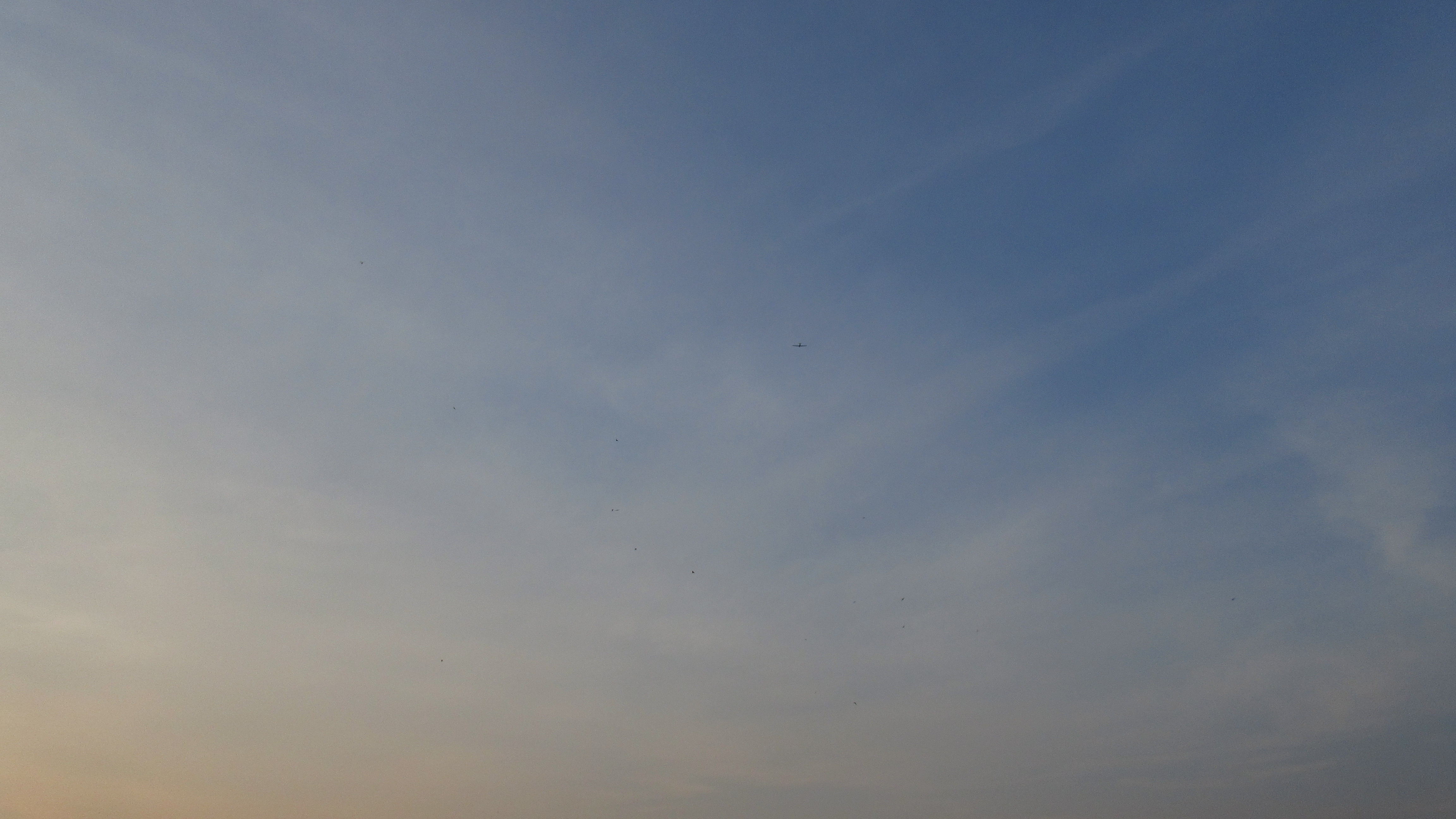 was ist gemeint? Dass wir schon immer genau hingucken müssen? Mauersegler & Flugzeug sehe ich nur dann, wenn ich das Foto gehörig vergröß´re; – was 2 * möglich ist … Mauersegler sind – „true word; – sense saying“ – Vogelschau – Auspicia – und immer noch sind sie – Mauersegler – rhythmisch stärker, als die laut anbrandende Woge der Motoren jeder Art, die wir trotzdem brauchen, weil die Natur allein – entgegen aller Romantik – uns doch nicht – oder noch nicht schützt. Die Mauersegler, fröhlich kreischend die Mücken aus dem himmlischen Ozean erntend, wie ihre Vettern, die Wale den Krill, begünstigt durch Enten, Menschen und Tiere in großer Zahl … !