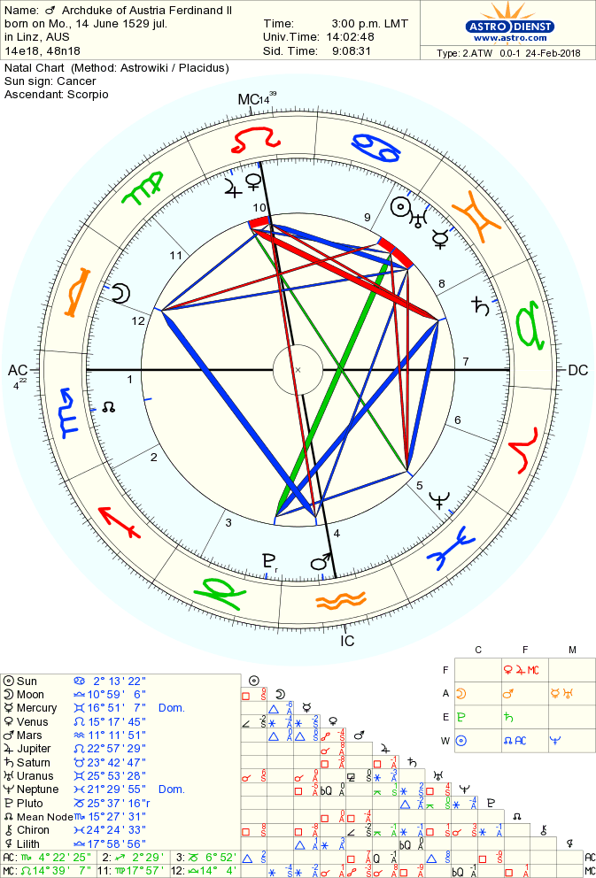 Aber darum geht es nicht: ich wollte aufzeigen, wie einfach elementare Bedürfnisse des/der GeburtsherrscherIn erkannt werden können. Dann kommen die W-Fragen: „Worunter leidet der Herr des AC?“ – „Könnte man ein wenig Licht dort hin werfen,“ nur mit etwas Selbsterkenntnis und Astrologie? – Vor allem aber schade nicht! – Mond in 6 als Herr von 1 will arbeiten, Sonne in 10 als Herrin von 1 kann nur selbstständig sein, usw. …
