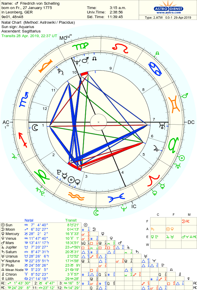 wie Merkur/Pluto im Zeichen Steinbock Schelling inspiriert haben. Aktuell steht im Steinbock Pluto fast still rückläufig und Saturn fast still gleich rückläufig in Konjunktion mit dem Südknoten, Merkur geht dazu ins Quadrat aus dem Widder 1. Mai und 2. Mai. Ein Grund, auf sich besonders Acht zu geben, ruhig und aufmerksam zu bleiben. Wie wandelt man alte Macht und Würde (Steinbock) in warme, emotionale Wechselenergie (Krebs)?