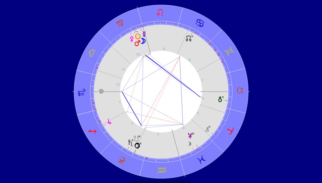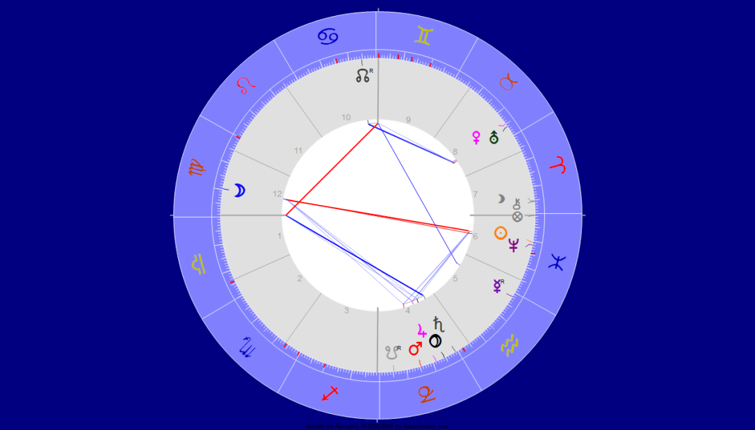 Hier im Vollmondhoroskop ist Merkur noch mit dem kleinen „er“ für rückläufig gekennzeichnet, einen Tag später, also heute, wo ich das schreibe, ist der schon „direktläufig stillstehend“ – oft ein turning-point zum Aufräumen – Vollmond als Erregungs-Klimax gäbe dazu auch Anlass.