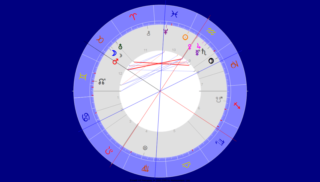 im 12:00 Mittags Horoskop für das Datum des Medienermächtigungsgesetzes sehen wir eindrucksvoll die sich aufbauende Mars/Venus Opposition. Das Gesetz wurde im Windschatten der US-Wahl doch noch durchgewunken, zuvor hatte ein Bundesland – Sachsen-Anhalt? – heldenhaft geblockt. Berichtet wird erst jetzt bei Merkur rück. Mars rückläufig im Widder, die Brachialgewalt der Zensur, die sich hier wie in finstersten Zeiten scheinheilig Bahn bricht, während Neptun an diesem 7. November das Sonnentrigon aufnimmt und alle mit Neptun in Skorpion triggen dürfte, je näher dran, desto mehr. Mars rückläufig muss keinen Bestand haben. Auch dieses Blog ist betroffen. Ich denke nicht daran, mich einer „freiwilligen Selbstkontrolle“ zu unterstellen. Schon der Begriff klingt nach Finger im Po.