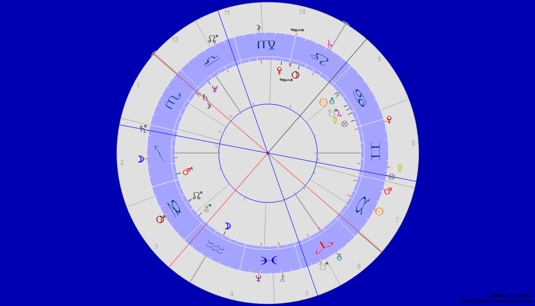 seit heute ist Merkur im Tierkreizeichen Waage rückläufig – Merkur in Waage ist der Gesprächsbedarf der Begegnung: es gibt das große Bedürfnis nach dem Austausch von Argumenten über Dinge, die alle bewegen: Waage betrifft den sozialen Austausch. Waage-Geborene betrachten das Leben als Spiel und lieben die Verkleidung durch wechselnden, aber immer aufwändigen – zumindest, was die Beachtung betrifft – Stil. Das ist aber kein Makel, sondern ihr edelster Vorteil und das Recht ihrer Geburt; – Präsident Putin, der zumindest vor ein paar Jahren gern öffentlich in Anspielungen über Sex spracht, ist auch Waage, sein Freund Berlusconi auch und Altkanzler Schröder ist zwar edler Widder, hat aber, zu Vollmond, den Waage-Mond mit Neptun-Konjunktion im 11. Haus, ist – ratet mal! – AC Skorpion – aber mit Mars in Krebs und Pluto/Jupiter – welch Überraschung für Reichtum – im Tierkreiszeichen Löwe. Diesen Mann brauchen wir, um Frieden zu machen.
