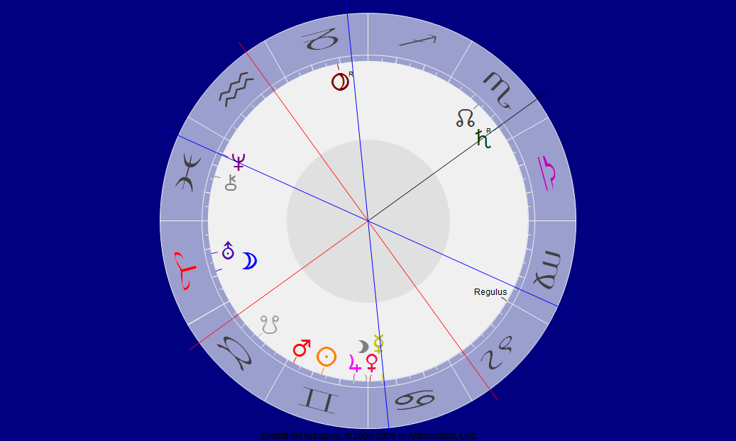 erfahrungsgemäß zeigen sich Aspekte als Wirkung hier nicht exakt, sondern zwei Grad vor oder nach dem genauen Aspekt. Venus im Steinbock belohnt die Treuen, sie steht erhöht! – ; … : Pluto hingegen würde gern alles radikal wandeln – und das ist euphemistisch gesprochen – frau/man kann sich leicht vorstellen, daß diese Mischung brisant ist – und dennoch auch Chancen birgt: für die Leidenschaft. Folgt man/frau aber dem Corpus Hermeticum, so wird gleich klar, daß diese plutonischen Leidenschaften nicht zum Triumph der ägyptischen Priester gehörten, sondern eher in einer Tradition stehen mit den späteren Gnostikern, die wohl befanden, der Mensch solle sich am besten gar nicht fortpflanzen, weil diese Welt eben nicht zunächst Gottes schöne Welt wäre, sondern die eines Zwischengeschöpfs – welches es nicht gut mit uns meinte und die menschlichen Triebe für seine Zwecke benutzte …