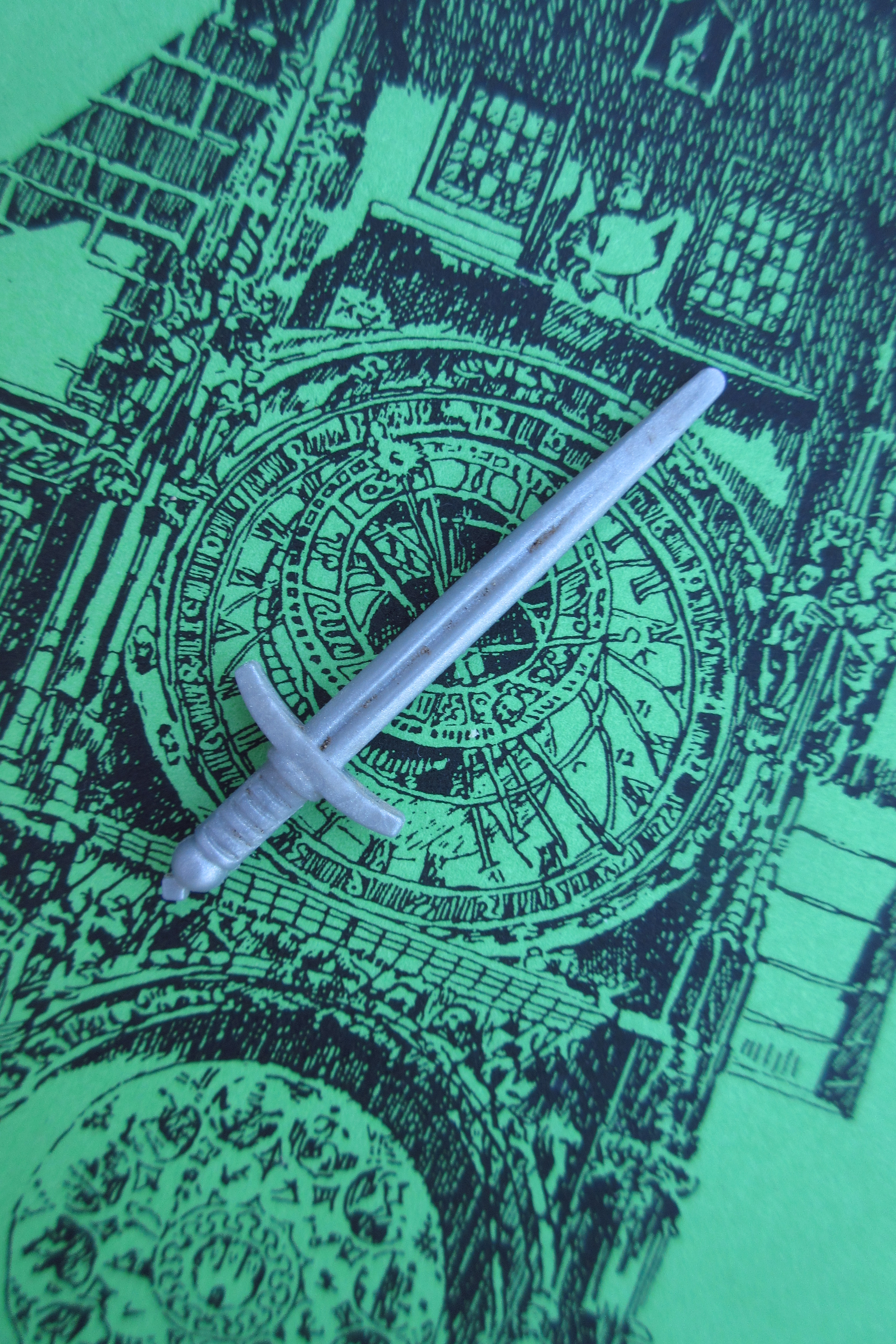 Hermann – mit dem wir den Gang taten – hat das Schwert auch bezeugen können – genau am Pass auf der Burg, vor der Kapelle: Playmobil – ganz klar – aber doch auch Zeichen Parzivals´ Rittertum – Waage hat Stil und verkleidet gern – dazu Mars/Venus/Jupiter–Konjunktion in Jungfrau, die zuletzt Mitte November 2006 in Skorpion sich befand. Mars natürlich für Schwert. Mars in Jungfrau: Schwert = praktische Vernunft.