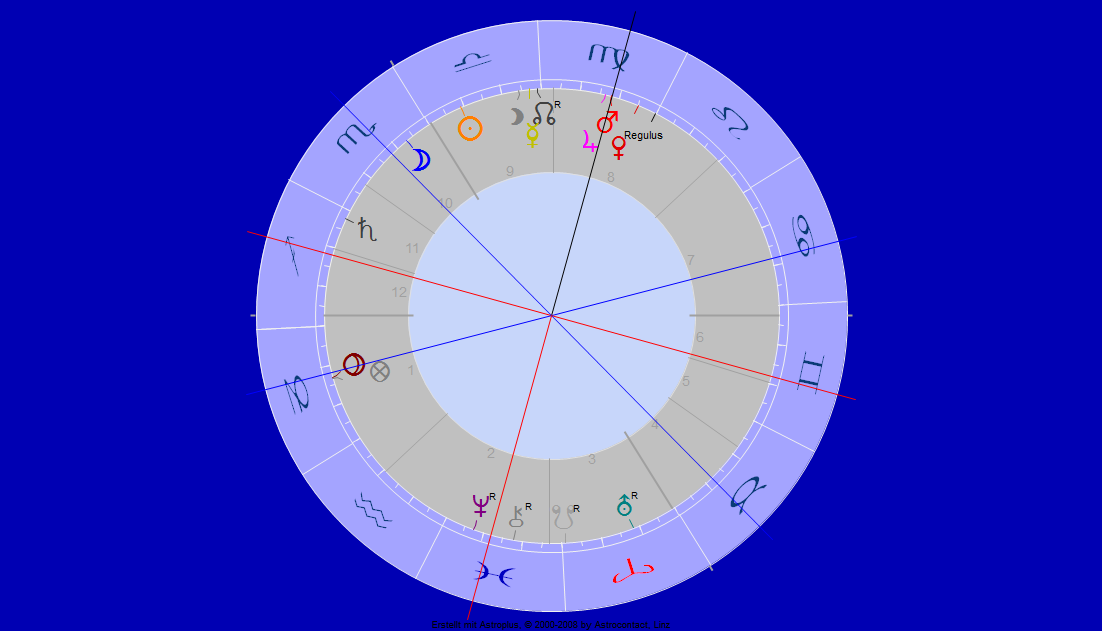 Bedenklich ist jedenfalls die spätere Mars-Quadratur des Merkur, denn Mars ist ja (alter) Dispositor (Bestimmer), Zeichenherrscher im Skorpion, dem Ort der Zusammenkunft. Die ganze Signatur fordert zur Geheimhaltung auf, Diskretion.