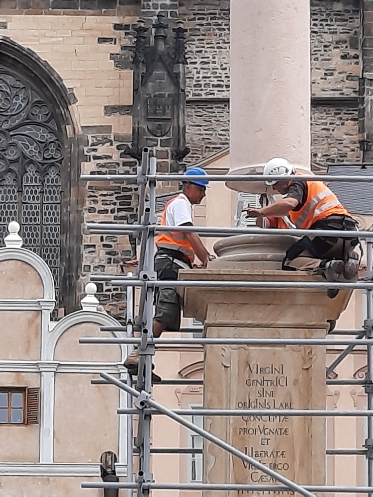 Und nun heute (04.06.2020) – Venus rückläufig im Zeichen Zwillinge im Herzen der Sonne genau in der Zeiten-Linie Lilith/Südknoten/Venus & Sonne – im Zeichen Zwillinge. Ein wahrhaft zauberhaftes Bild für eine Wiedererrichtung durch den Bildhauer Petr_Váňa, der am 22. April 1965 geboren wurde mit dem nördlichen Mondknoten im Zeichen Zwillinge sehr exakt auf der Linie, die mit Lilith im Dekrethoroskop (ganz innen) des Ferdinand III beginnt, sich mit dem Südknoten daselbst fortsetzt und die Wiederrichtung durch die rückläufige Venus im Herzen der Sonne bestätigt. Dass der Bildhauer eine Mond/Lilith Konjunktion im Zeichen Steinbock hat, ist eine der wundersamen Stein-Beigaben, die die Astrologie so zauberhaft machen.