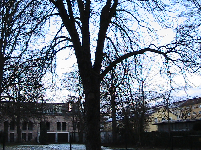 Bei den kahlen Bäumen vor blauem Sonntagshimmel fällt um so mehr auf, wie sie raumgreifende, schlummernde – oder, wer weiß? – hellwache Riesen sind, die mit uns freundlicherweise ihren Lebensraum teilen?