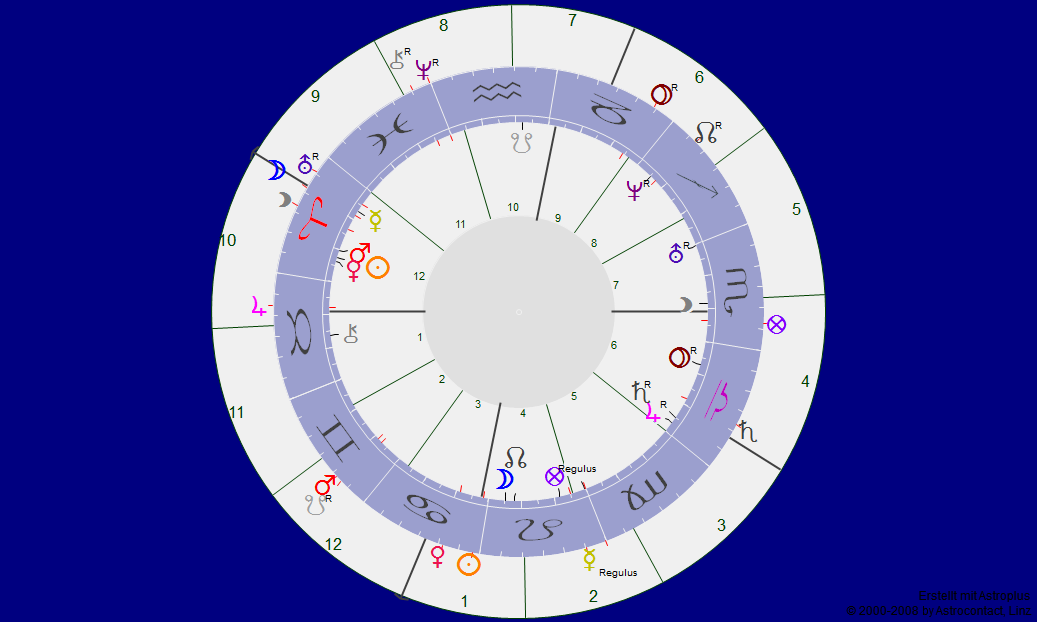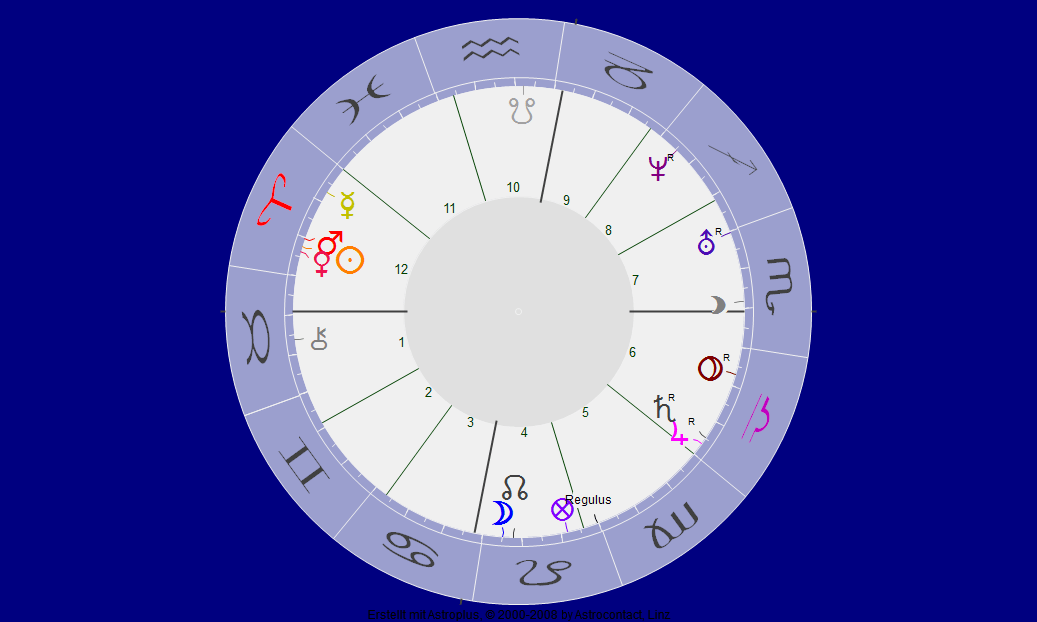 Venus in den Zwillingen kann aber frei agieren, sie hat eigentlich keine problematischen Aspekte, sondern wird sogar ein Trigon zu Saturn in der Waage machen, während dieser sich anschickt, wieder direkt zu gehen. Sie kann also mit Liebe und Wohlstand Struktur bilden. Hat sie Liebe und Struktur, wird auch der Wohstand folgen. Denn genau dann, wenn die Venus am 16.05.2012 ein Trigon zum langsamen und immer noch rückläufigen Saturn bildet, wird sie selbst – Venus – auch rückläufig im Zeichen Zwillinge. Es wäre also passend, den Rhythmus zu ändern zu dieser Zeit und konservative Werte in den Mittelpunkt zu stellen, natürlich im besten Sinn.