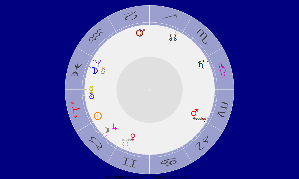 Leider kennen wir die Geburtszeit nicht, doch das Horoskop oben sagt auch schon einiges. Merkur ist in Cazimi „Als gleich wie im Herzen der Sonne“. Wäre er ein Grad weiter, müßte man ihn als „verbrannt“ bezeichnen. So jedoch steht er, rückläufig, im Punkt seiner stärksten Wirkung. Es ist, als hätte sich die Sonne selbst in einen großen Merkur verwandelt. Eric van Slooten – der bekannte Stundenastrologe – zweifelt an dieser Regel. Astrid Lindgren aber ist eine wunderbare Bestätigung.