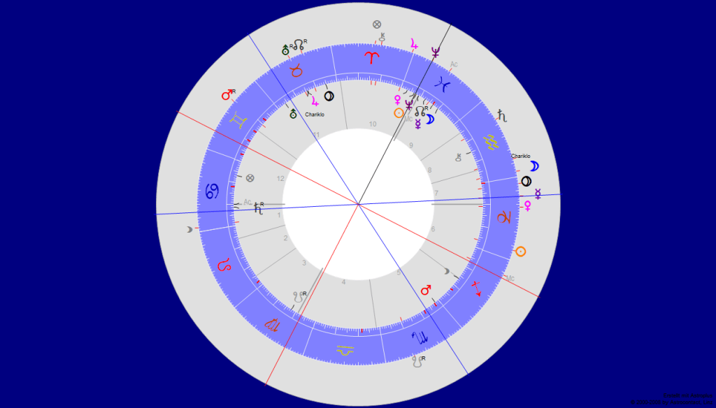 Paul Ehrlich hatte auch den Reichtums-Aspekt Pluto/Jupiter im Stier. Die Erwähnung des „Methylenblaus“ zur Zelleinfärbung gibt dem Mann mit dem großen Wassertrigon noch den richtigen Farbton:
