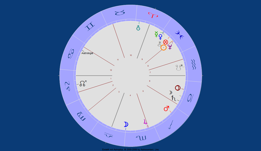 solche Fundstücke sind mir die liebsten Orakel. Venus steht hier prächtig im eigenen Zeichen in einem Eckhaus – mächtiger geht es nicht. Sonne als Herrin des aufsteigenden Löwen in Haus 9 – Ausland/Schreiben aber im Kontext des Wertes …