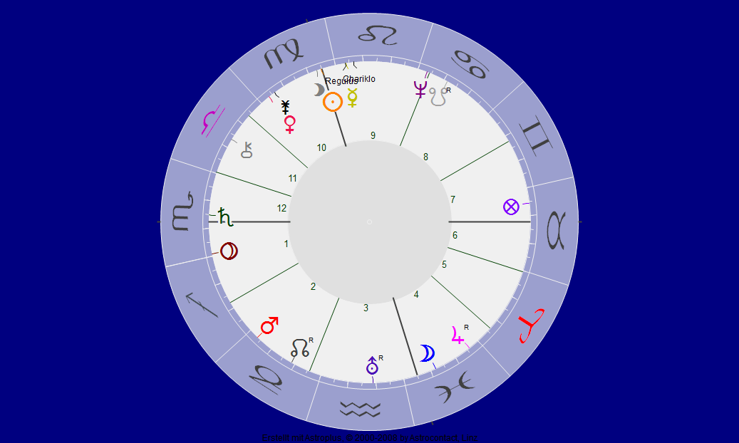 „Ich hüte mich, und meine Fehler stürzen sich nicht mehr wie Gebirgswasser einer über den andern.“ – Genauer kann man unbewußt den eigenen Goethe-Fische Mond – und wie er jetzt eben steht – nicht einbringen. Mars hat im Fragehoroskop Wohnplatz im Haus 4 in Opposition zum Mond – und vertritt in gewissem Sinn den inneren Kreativitätsimpuls, den Goethe auch in seinem Horoskop hatte zwischen Jungfrau und Fische.