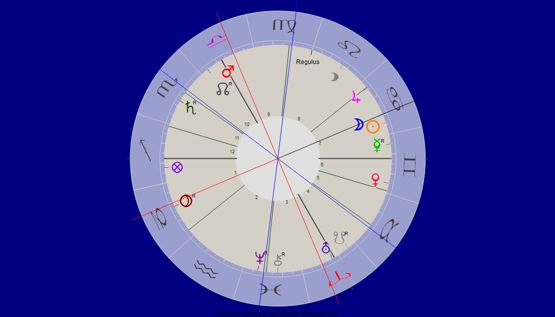 dieser Vollmond bringt – wird man/frau um diese Zeit geboren – leider doch „Gefühlstyrannen“ hervor, wie Oskar Adler – Astrowiki-de – der geniale, unbekannte und fast völlig vergessene Meister sagt. Mars hat gerade seine zweite Quadratur (die erste war im Januar im Steinbock, also dem Oppositions-Zeichen zu Krebs) zur Sonne hinter sich, und ebenso – noch wichtiger – die Sonne ihre Quadratur zu Uranus; – Merkur und Jupiter wechseln bald Zeichen. Und so wechselt auch bald die Stimmung: Merkur wird weniger umtriebig, aber mehr verbindlich (gefühlsmäßig); Jupiter wird weniger verbindlich, aber noch glücklicher (aber nur für diejenigen, die nicht Raketen und anderen Scheiß – excuse my language – brauchen.